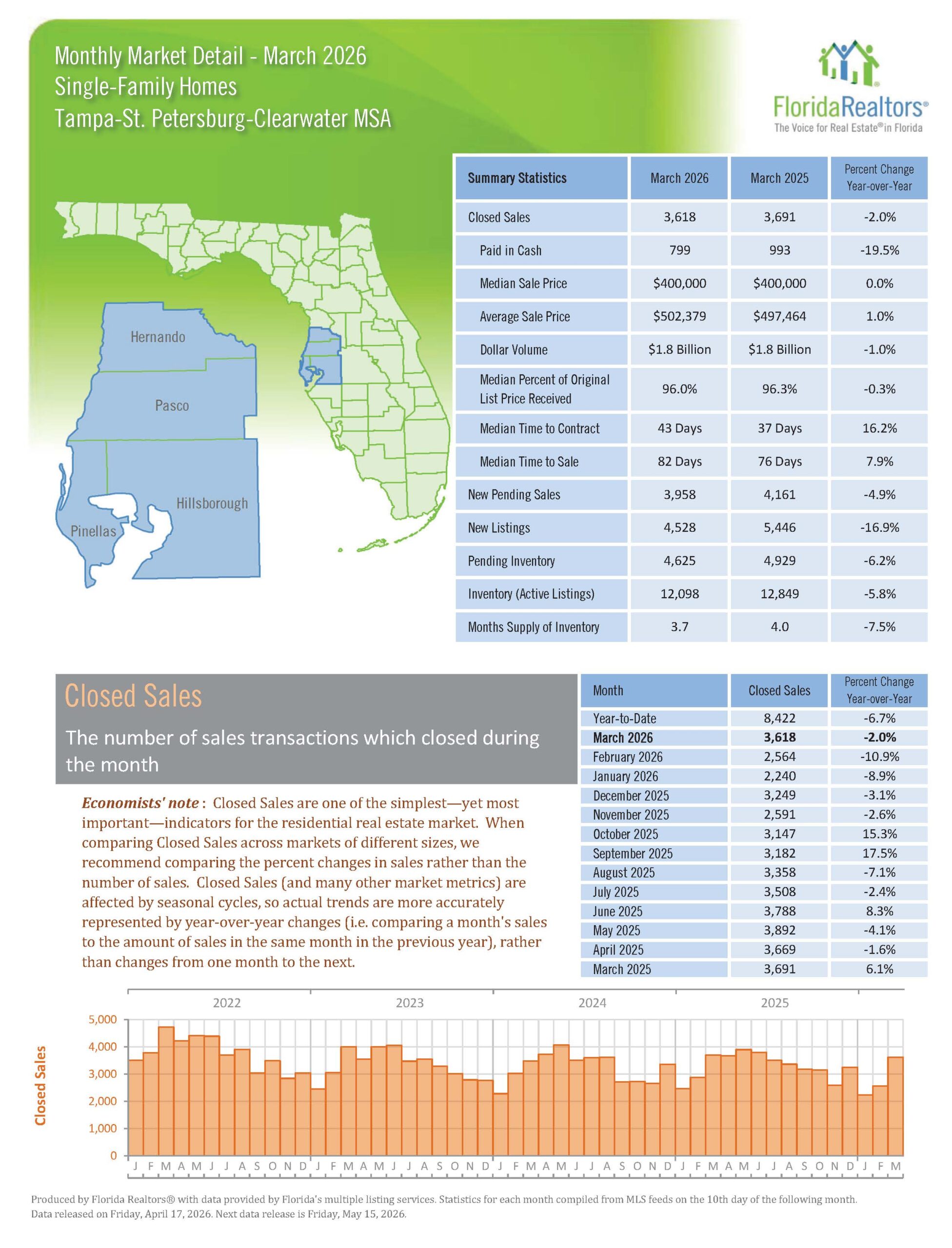 Home » Tampa Bay Real Estate Market News Tampa Bay Real Estate Market News Tampa Selected by Money magazine as one of the best cities in the U.S. in which to live! Tampa ranked as the most desirable major city in the U.S. Why you want to live in Tampa, Florida! Tampa Bay MSA Market Stats for March, 2026 March, 2026 Florida Housing Report